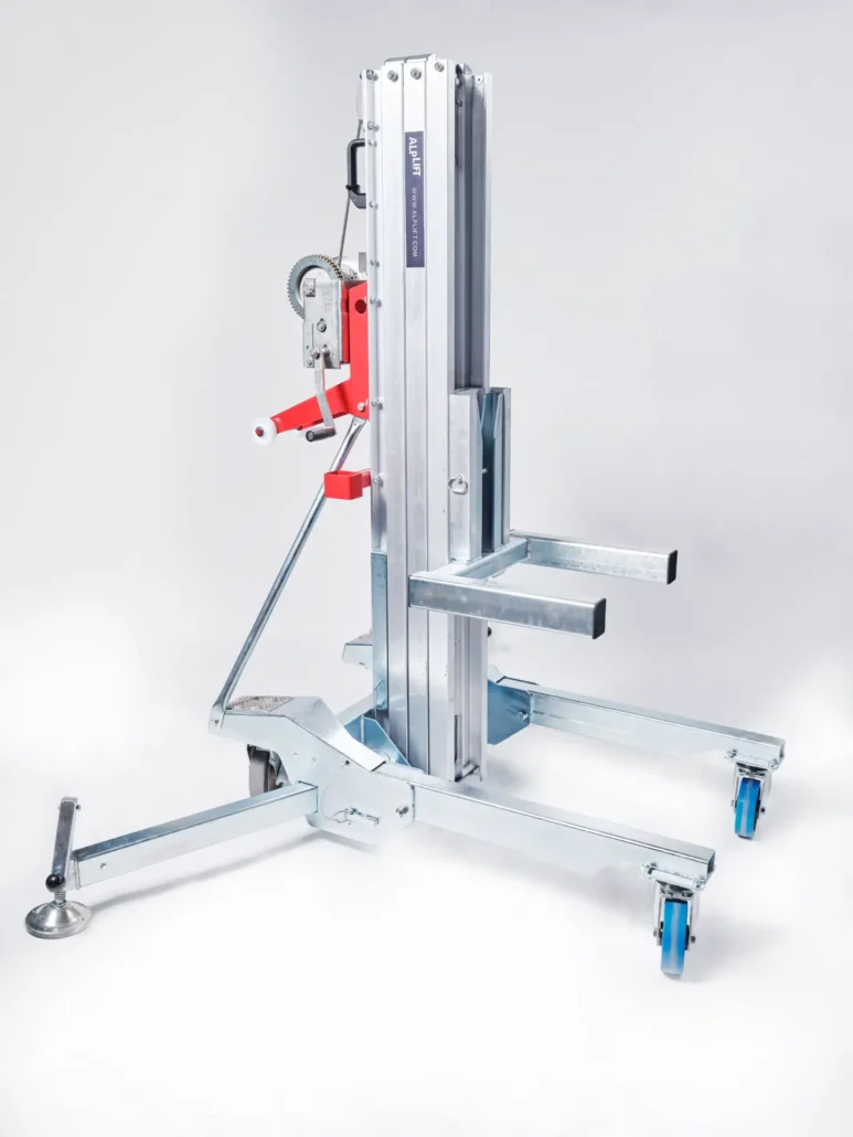 Der Montagelift XL400 kombiniert kompakte Abmessungen für den Transport (eingefahrene Masthöhe von 1,80 m) mit einer enormen Reichweite und einer außergewöhnlichen Hubkapazität von nicht weniger als 650 kg. Ein unverzichtbares Kraftpaket, um z.B. schwere Metallkonstruktionen zu errichten oder schwere Installationen in bis zu 4 m Höhe zu befestigen. Dieser einmalig starke Montagelift ist genauso solide und zuverlässig wie die Montagelifte der anderen Serien. Erleben Sie die Benutzerfreundlichkeit des Montagelift XL400 bei Ihrer nächsten schweren Arbeit.